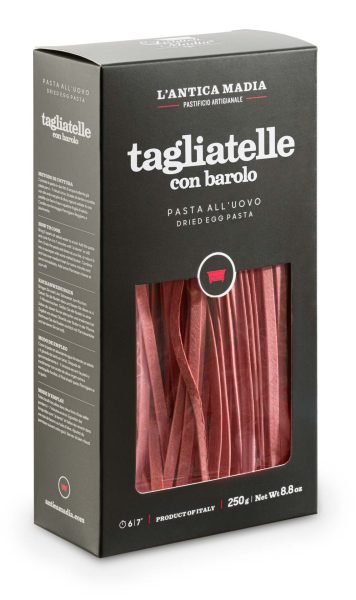 Durum wheat semolina, eggs (30%) , red beet powder, Barolo DOCG 2%. Allergens: gluten, eggs. It may contain traces of molluscs, soy, mustard