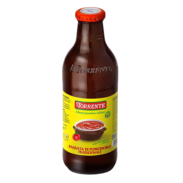 La Torrente Tomato Puree starts off with 100% sun-ripened Italian Tomatoes. They made by srain the skin and seeds, and bottle the smooths, rich, velvety tomato puree right here in Italy to guarantee you with a fresh and authentic flavor.